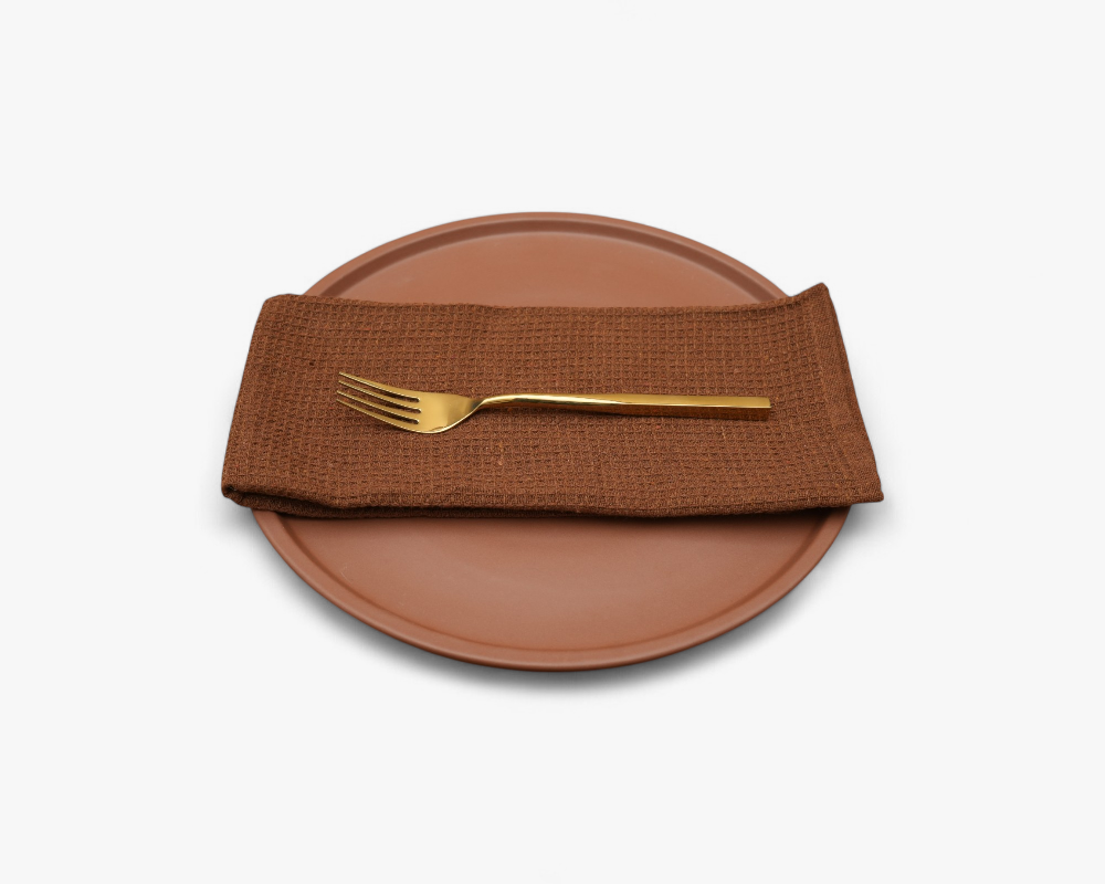 You will be holding a piece from the Dhairyam Roots Collection – where nature’s five elements meet timeless design. Designed for the mindful table & Inspired by the grounding force of nature. Bring grounded elegance to your table with our Bhoomi Fold napkins, are available as a set of two. In a rich brown hue drawn from soil and bark, these napkins embody warmth, stability, and timeless simplicity. Designed for intimate meals or rustic gatherings, they add a natural depth to any table setting, anchoring your space in quiet strength. Each napkin is dyed in a color inspired by the Elements, and made from 100% cotton to bring intention, beauty, and balance to your everyday rituals. At Dhairyam, we believe in mindful living – choosing materials that are kind to the planet, and designs that resonate with your inner space. Your napkin set is reusable, washable, and made to last—because elegance and sustainability can share the same table.